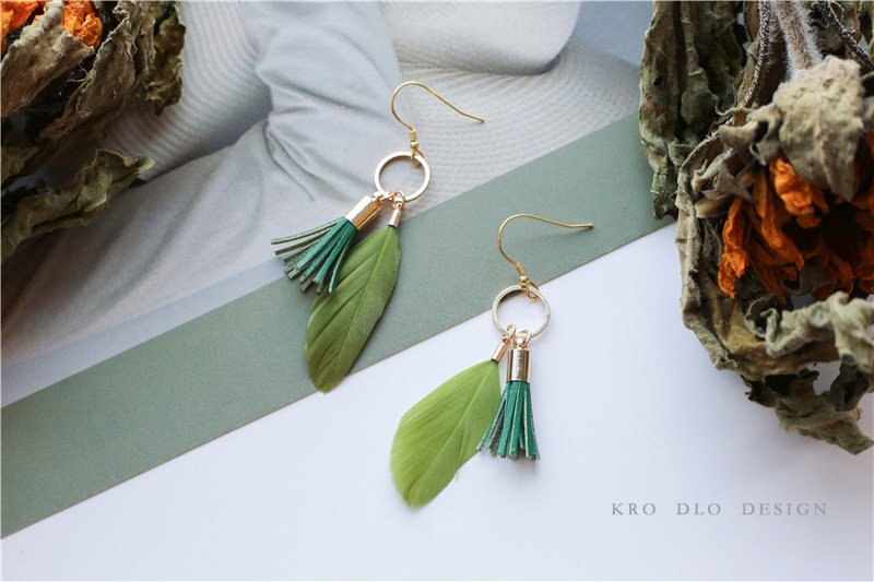 | 尺寸:全长7cm 直径1.6cm | 材质:925银针 保色合金 羽毛 皮革流苏 |