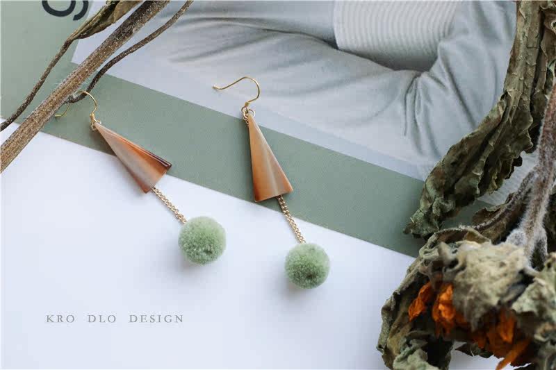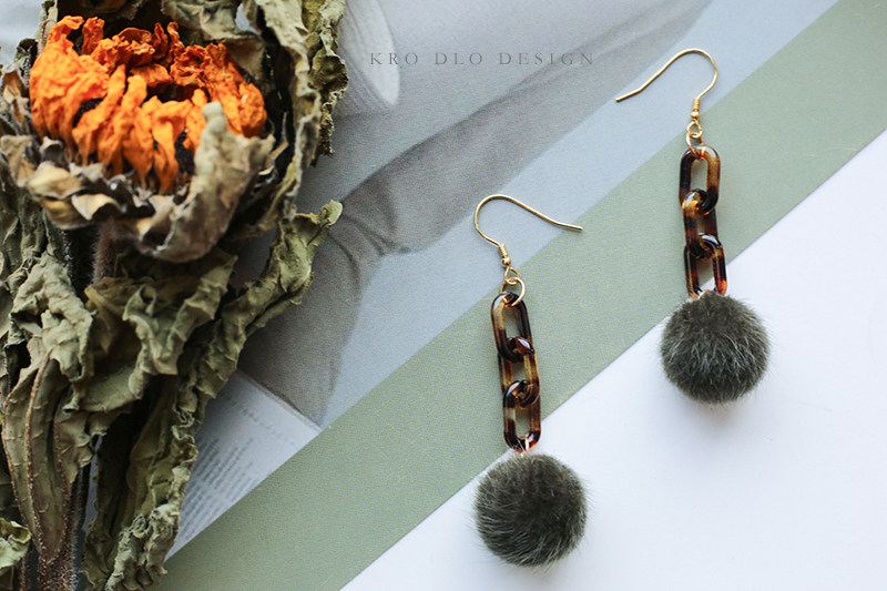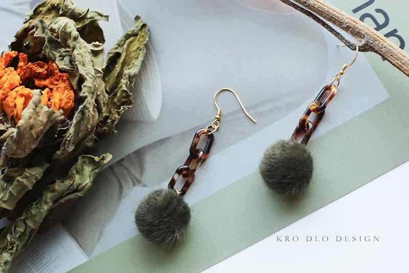 | 尺寸:全长7.4cm 直径2cm | 材质:925银针 人造毛球 醋酸玳瑁 |