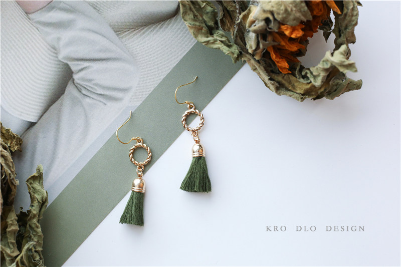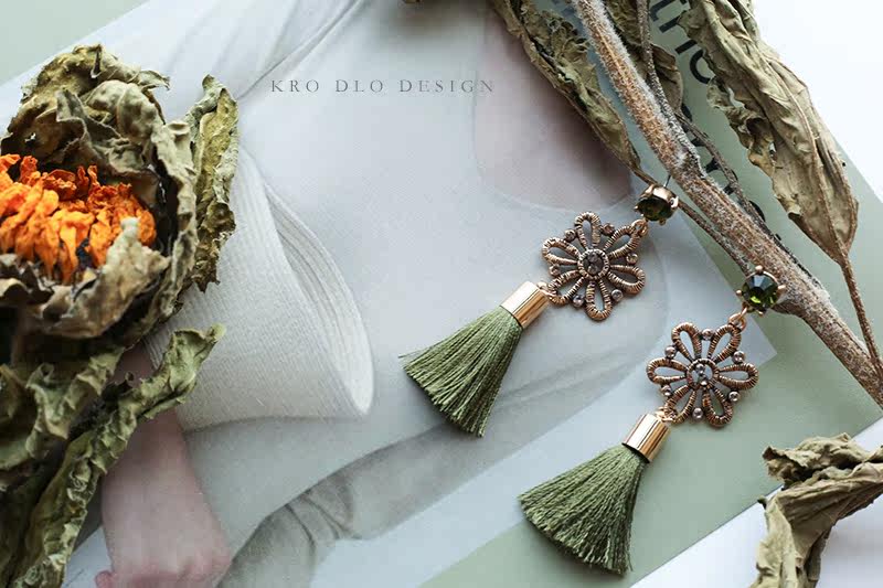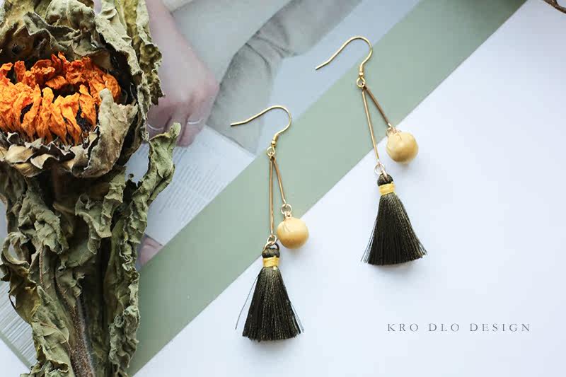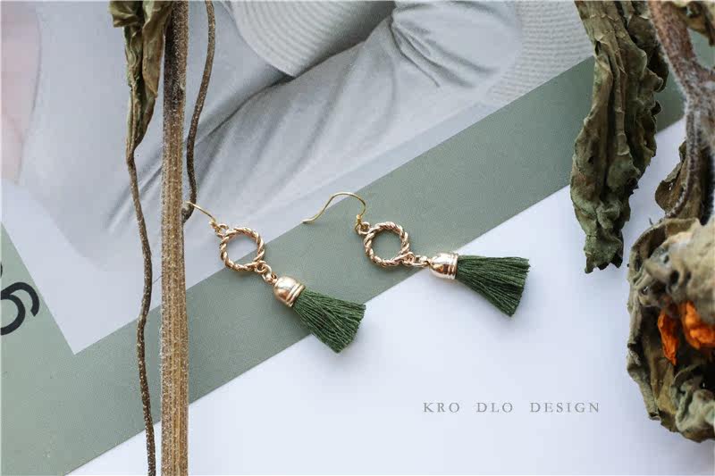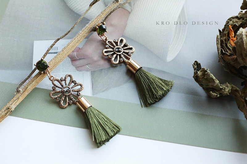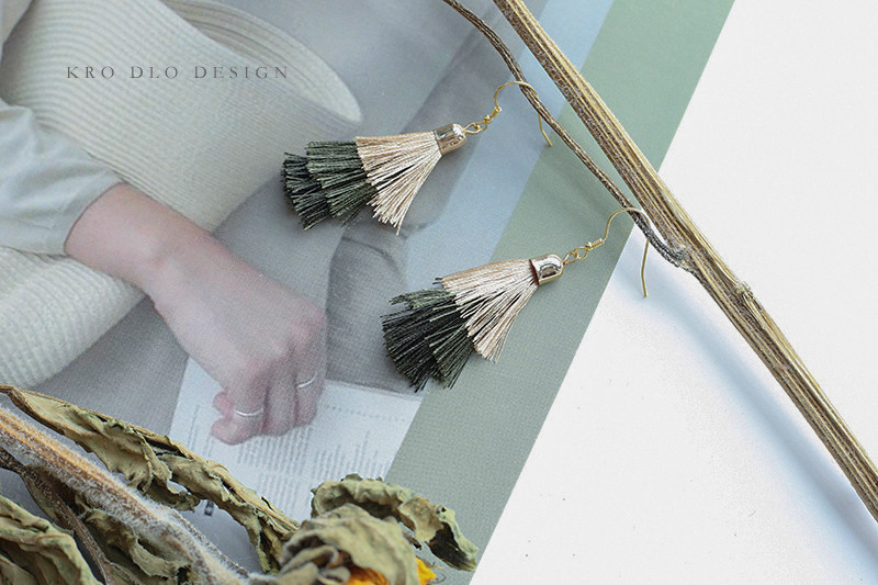 | 尺寸:全长6cm 直径1.5cm | 材质:925银针 保色合金 棉线流苏 |