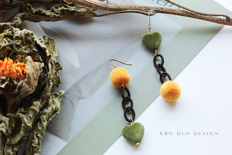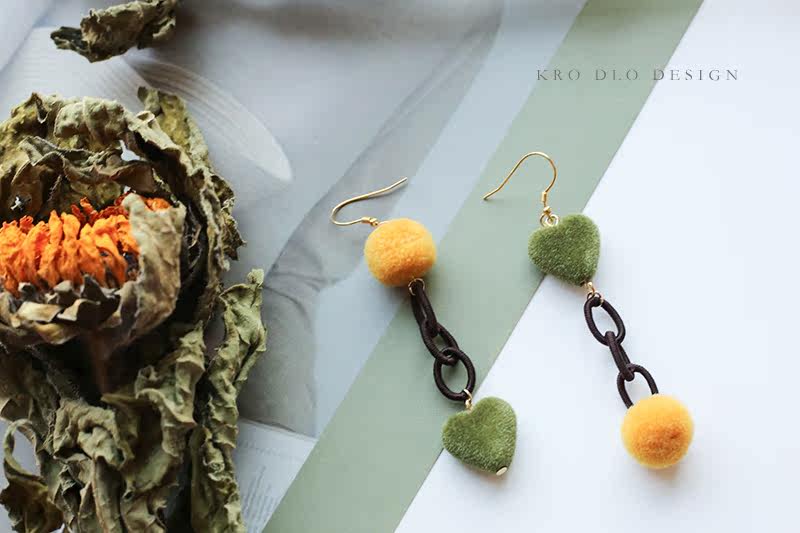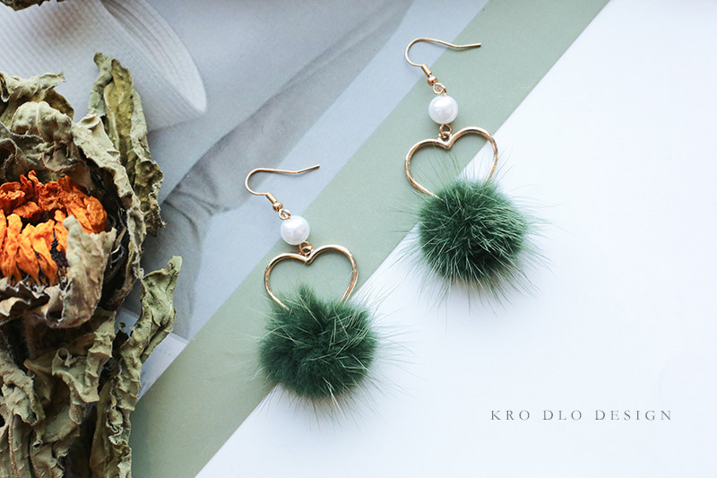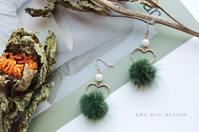 | 尺寸:全长8.2cm 直径1.8cm | 材质:925银针 人造开司米毛球 韩国植绒爱心 |