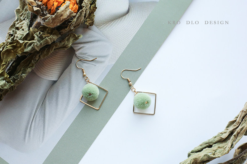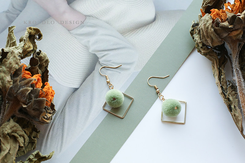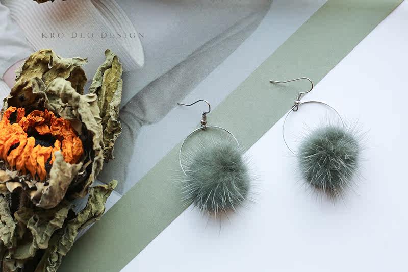 | 尺寸:全长5.5cm 直径2cm | 材质:925银针 保色合金 开司米毛球 |