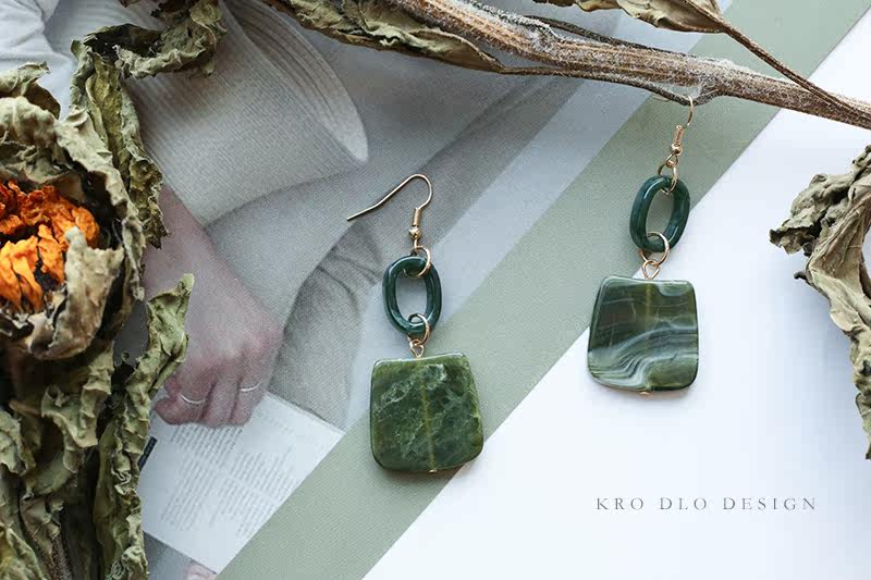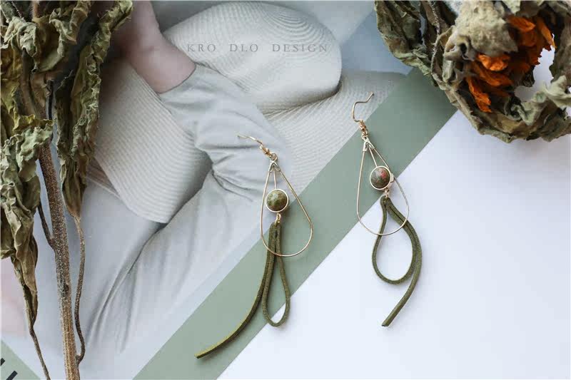 | 尺寸:全长8cm 直径2.2cm | 材质:925银针 保色合金 皮革 花石 |