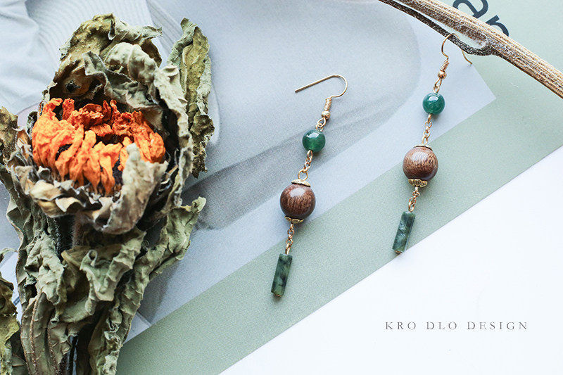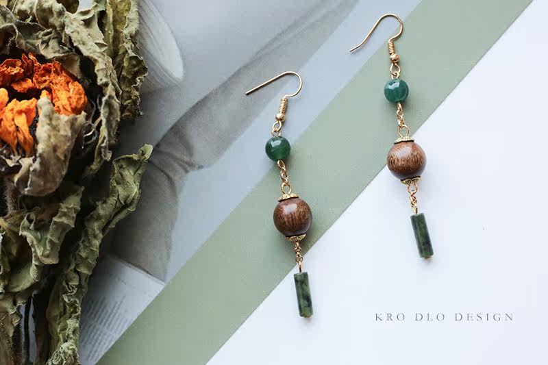 | 尺寸:全长8cm 直径1.1cm | 材质:925银针 保色合金 木珠 天然玛瑙 |