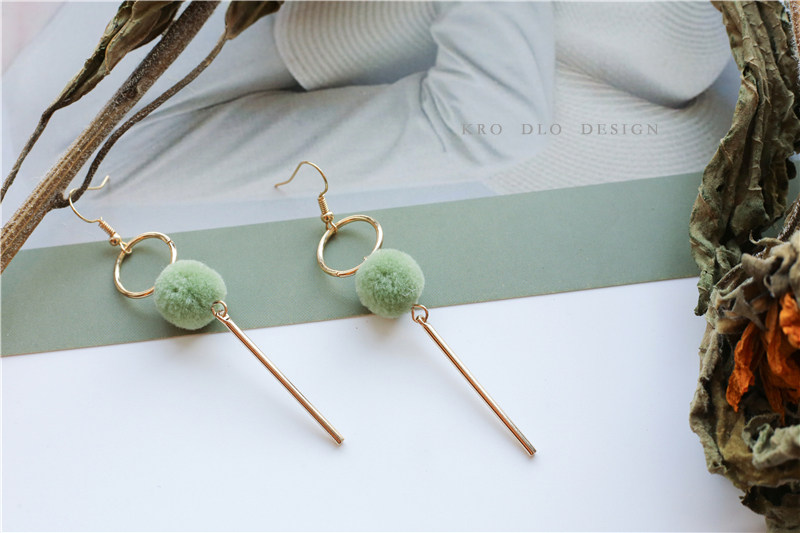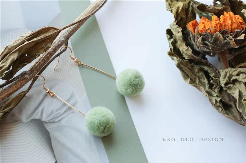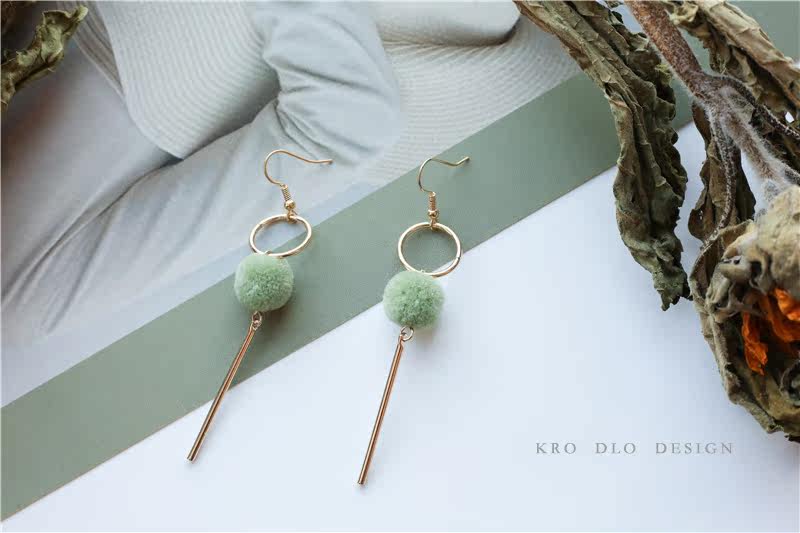 | 尺寸:全长8cm 直径1.5cm | 材质:925银针 保色合金 人造开司米毛球 |