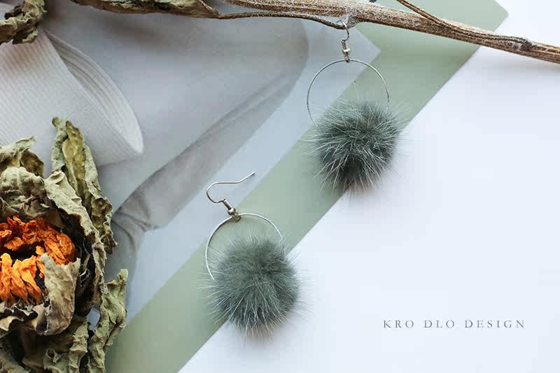 | 尺寸:全长6cm 直径3.2cm | 材质:925银针 水貂毛 |