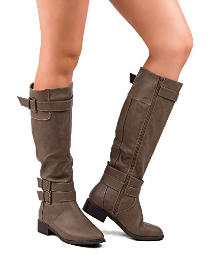 -. Title : RF Women's Leatherette Buckle Accent Knee High Riding Boots With Hidden Pocket (WIDE CALF AVAILABLE)