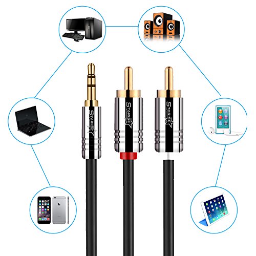 Starise 3.5mm to RCA Cable Male to Male Audio Stereo Y Splitter Cable for Car, Headphones, Home System, iPhone, iPod, MP3 Players and More (3 Feet)