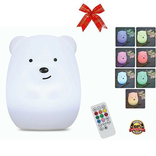 Night Light for Kids with Wireless Remote – Portable Multicolor LED Animal Silicone Nursery Light - 8 Colors & Breathing Mode Timing for a...