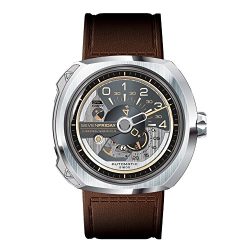 -. Binding : Watch -. Brand : SEVENFRIDAY -. Color : Multicolour -. Department : Unisex-adult -. EAN : 0722589343025 -. Feature : Self-winding automatic movement - an Eco-friendly choice for discerning customer. Powered by everyday movement of your arm / Automatic self-winding movement with analog display and mineral crystal dial window / Date calendar water-resistant / Brown leather stainless steel case with multicolor dial / Water resistant to 3 ATM / 30 meters / 100 feet : withstands rain and splashes of water but not showering or submersion -. Label : Sevenfriday -. Manufacturer : Sevenfriday -. Model : V2-01 -. MPN : V2-1 -. PackageQuantity : 1 -. PartNumber : V2-1 -. ProductGroup : Watch -. ProductTypeName : WATCH -. Publisher : Sevenfriday -. Studio : Sevenfriday -. Title : Sevenfriday V2-01 V Series Engineering Progress Automatic Watch -. UPC : 722589343025