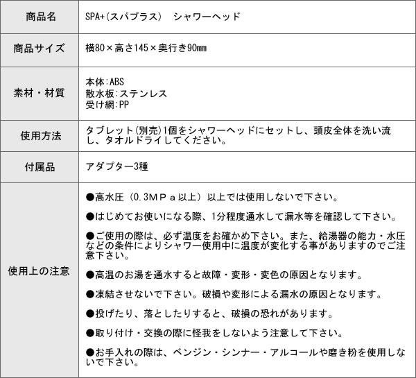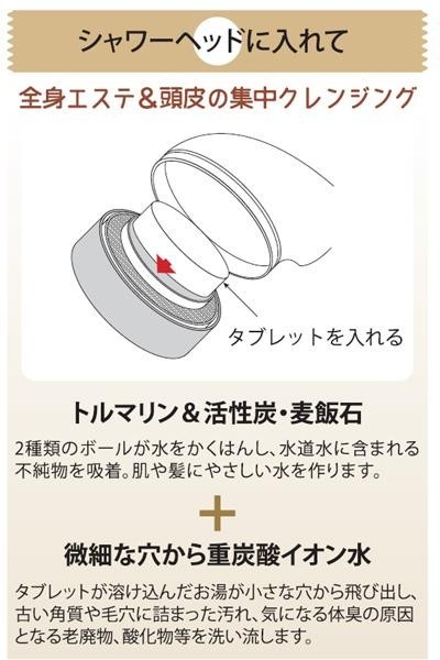 | 潤炭酸SPA BS60g(10錠入)や重炭酸SPA ff15g(10錠入)をシャワーヘッド内部にセット出来ます。微細な穴からの重炭酸イオンで「頭皮クレンジング」ができちゃいます♪ |