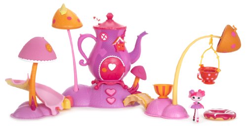 - Feature : Floating Islands; Islands float in water / Play in water or out of water / Teapot House and mushrooms spin to reveal a magical Lala-oopsie hideouts for dolls and pets / Mushrooms spray water to create a fun water slide / Includes floating donut raft and exclusive Mini Lala-Oopise character