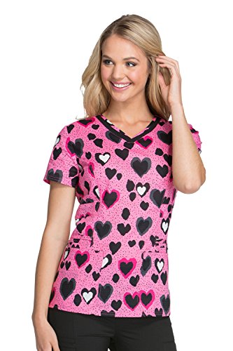 Heartsoul Women's V-Neck Heart Print Scrub Top