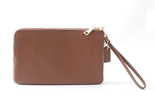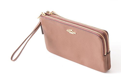 Coach Double Zip Pebble Leather Wristlet Wallet