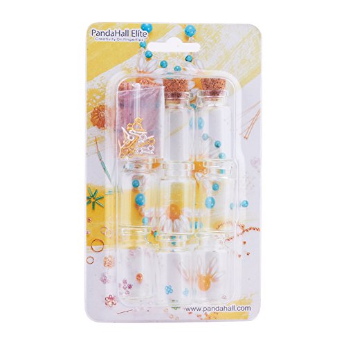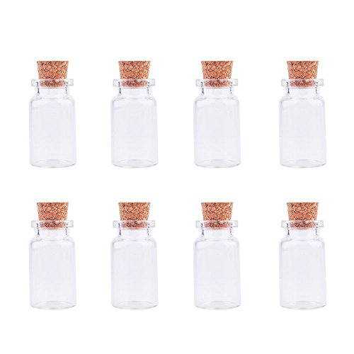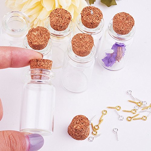 PandaHall Elite 8 Pcs Mini Tiny Clear Glass Jars Bottles with Cork Stoppers and Eye Pin Screws 40x22mm for Decoration, Arts & Crafts, Projects, Party Favors