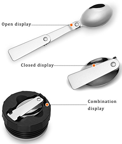 500ML Insulated Stainless Steel Food Jar with Folding Spoon Vacuum Food Flask Wide Mouth Lunch Container BPA Free for Travel,Camping and Hiking