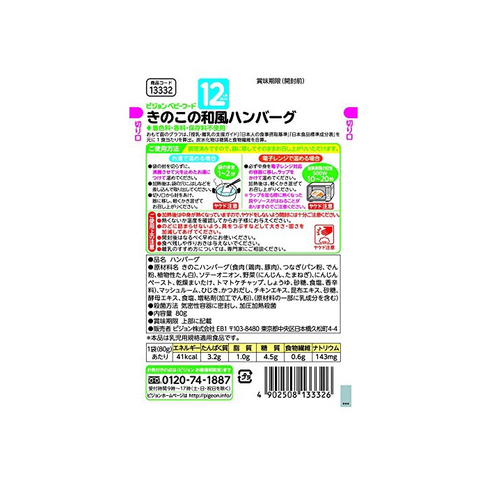 원본상품명: ピジョン 管理?養士さんのおいしいレシピ きのこの和風ハンバ?グ 80g