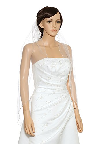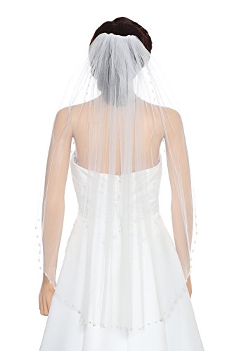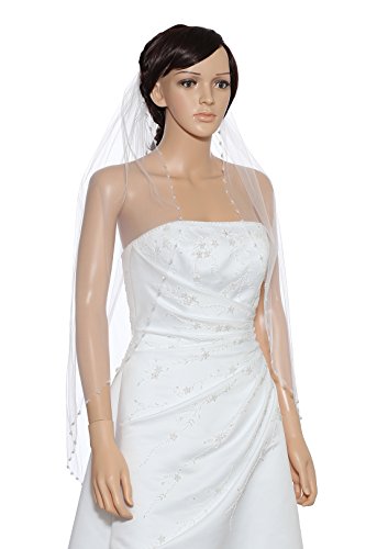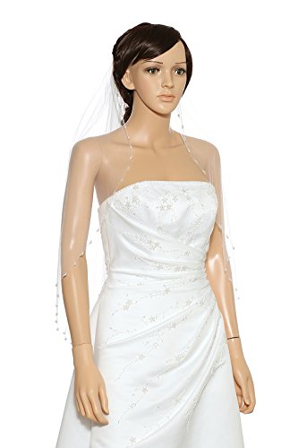 (Venus Jewelry)/Accessories/Scarves/DIRECT FROM USA/1T 1 Tier Pearls Crystals Beaded Wedding Veil Fingertip Length 36"