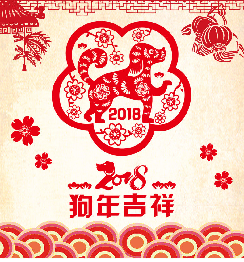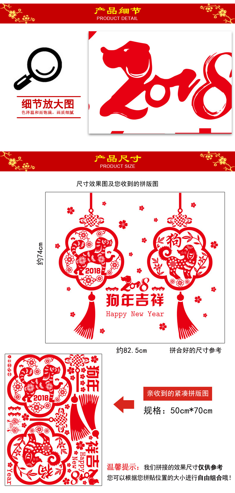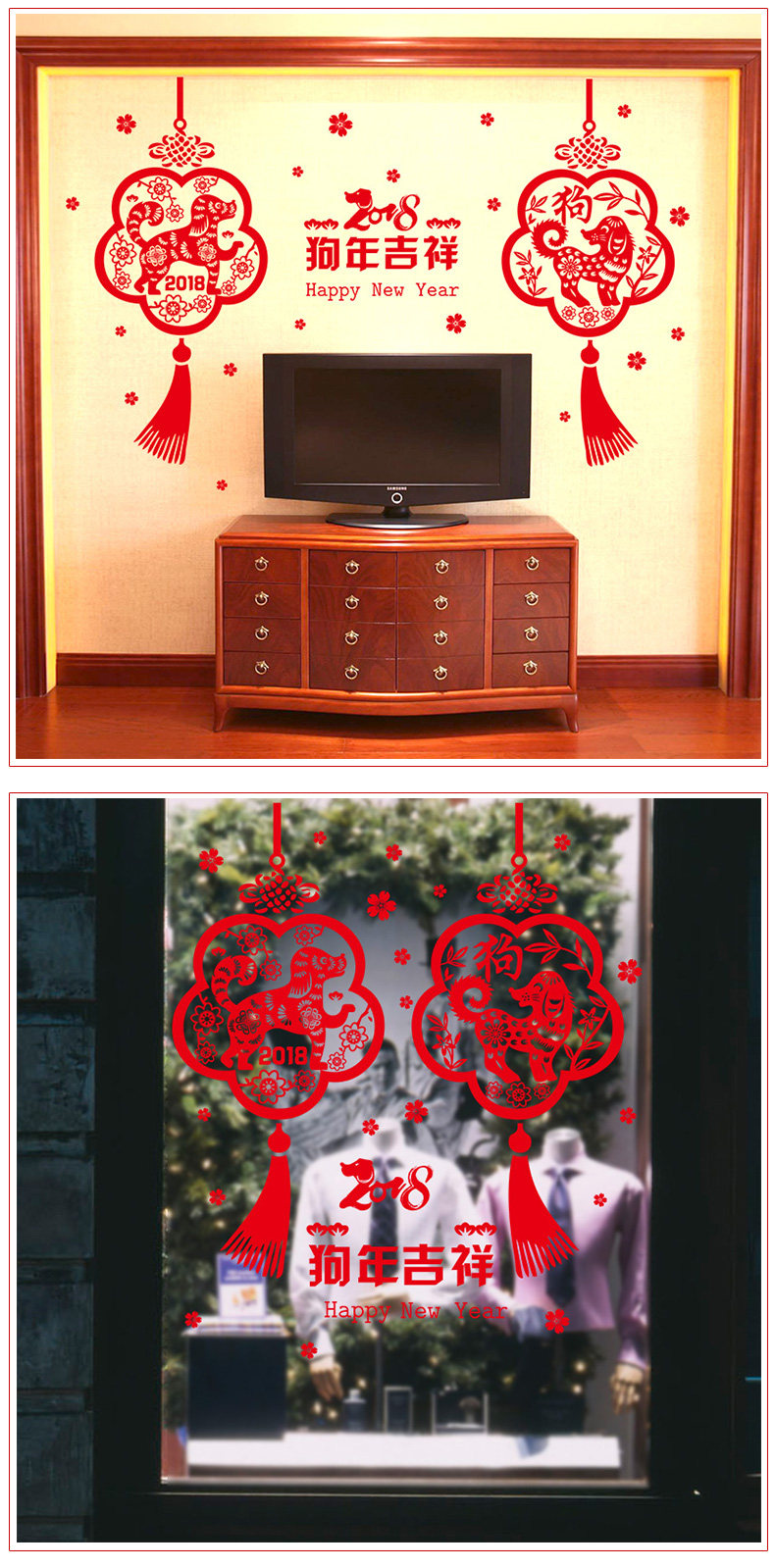 新年狗年吉祥墙贴纸店铺橱窗贴玻璃贴春节快乐窗花墙贴可移除