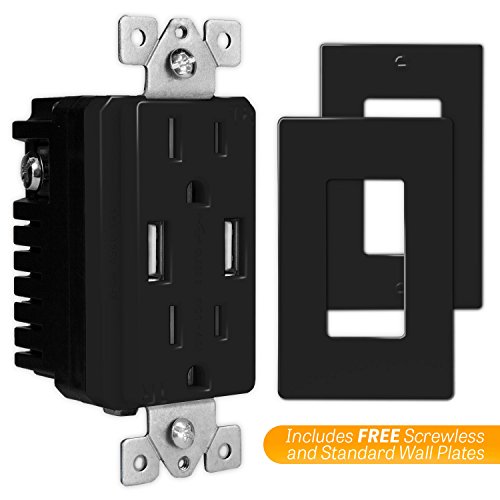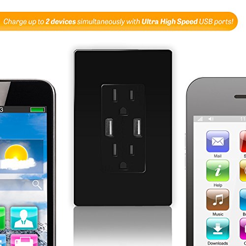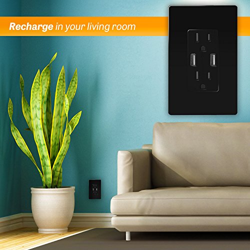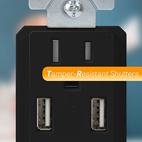 TOPGREENER TU2154A 4A High Speed USB Charger Receptacle 15A Tamper-Resistant Outlet w 2 Wall Plates, Black