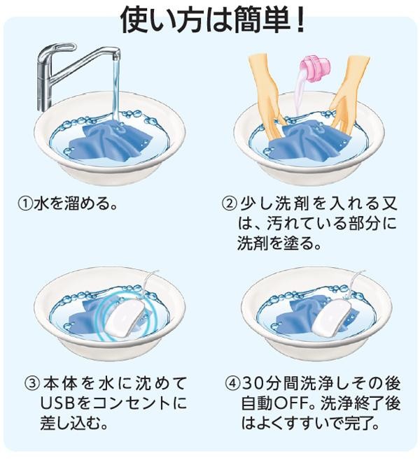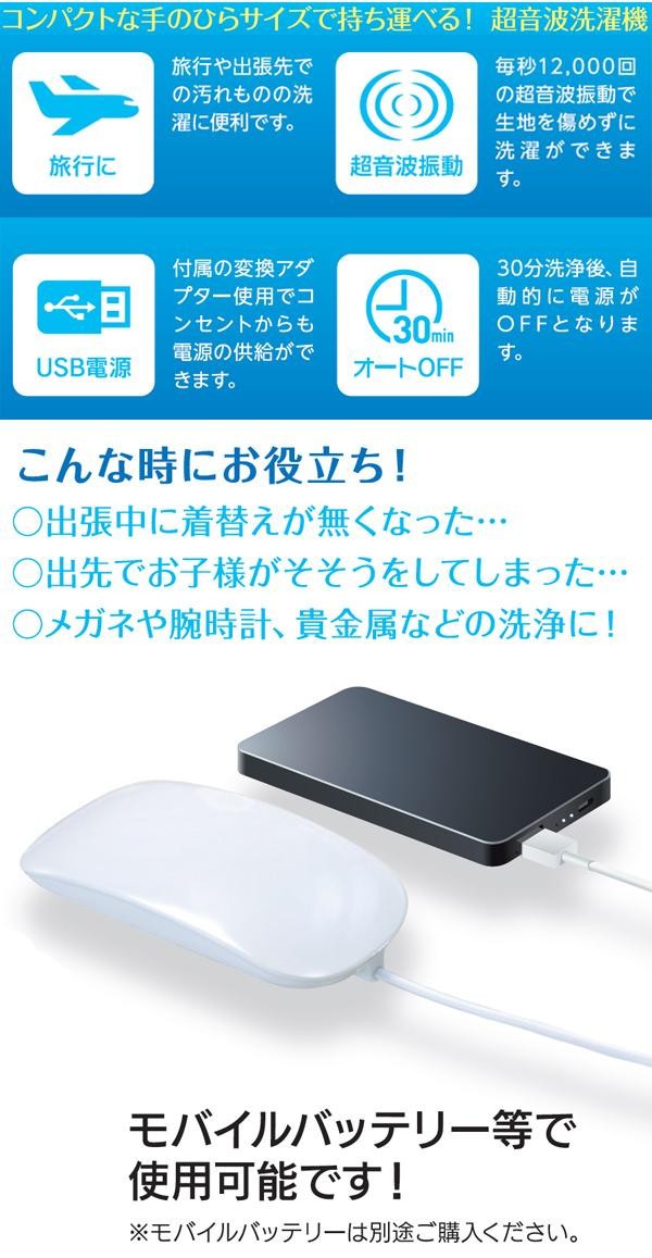 | コンパクトな手のひらサイズで持ち運べる超音波洗濯機!! |