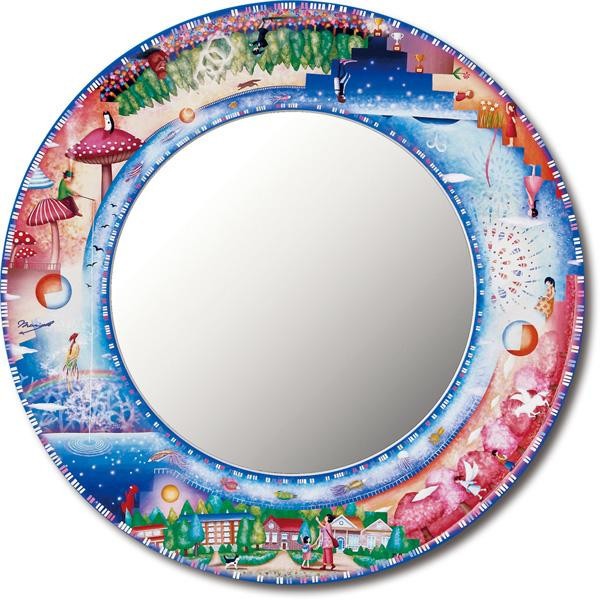 色彩鮮やかなイラストに、まあるい形がお洒落な可愛いミラー。プレゼントにも最適です♪