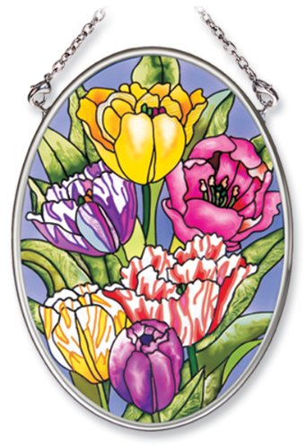 Amia Hand Painted Glass Suncatcher with Tulip Design, 3-1/4-Inch by 4-1/4-Inch Oval