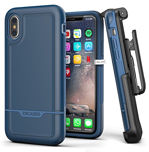 -. Title : iPhone X Belt Case w/ Screen Protector, Encased [Rebel Series] Red Tough Case with Secure Clip Holster for Apple iPhoneX (2017 Release) Military Spec Armor Protection (Navy Blue)