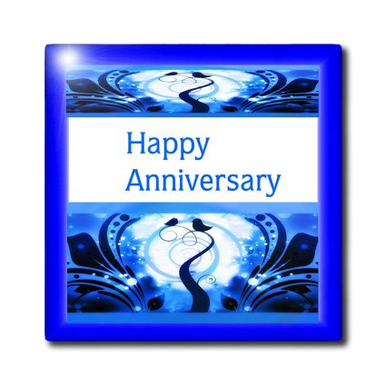 3dRose ct_179600_2 Image of Blue Lovebirds with Happy Anniversary-Ceramic Tile, 6-Inch
