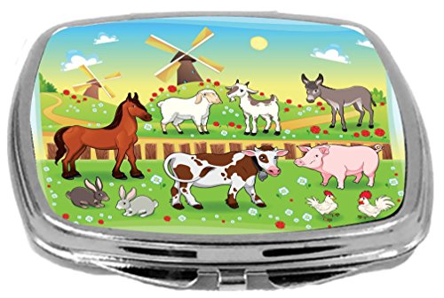 Rikki Knight Compact Mirror, Farm Animals with Background, 3 Ounce