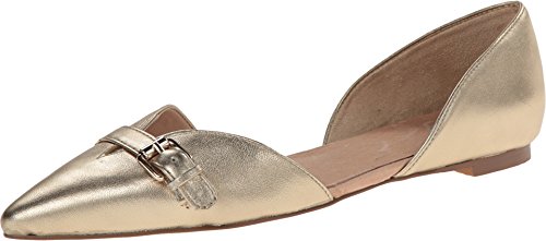 Upper available in gold leather or calfhair. Easy slip-on style flat. Smooth synthetic lining. Lightly padded footbed. Man-made outsole. Imported. Calf hair upper is from cow and has been dyed and treated. Origin of animal: Brazil.