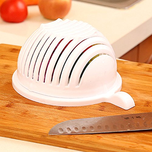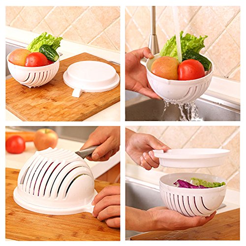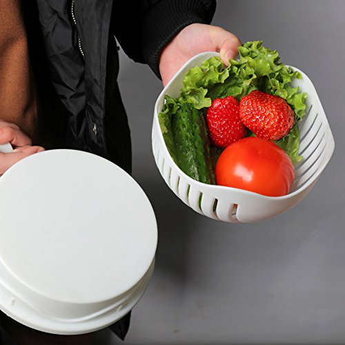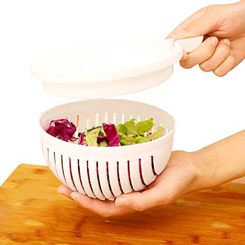 Studio : S-power Publisher : S-power Product Description Specification: Material:Food grade PP Size:22.5cmX18cmX10cm/8.86'X7.09'X3.94') Item weight:240g/8.6 ounce Package weight:310g/10.9 ounce Every one love salads,but maybe you will complain about the progress of make salads. First,you should wash them,then slice and chop them,make your chopping board so mess in the end. But now,it is all done together and so easy. How to use: 1.Put the ingredients into the bowl and wash to clean,make sure the ingredients are no more than 3/4 of the bowl. 2.Close the bowl and make sure the upper cover fix well with the base. 3.Cut the ingredients in the card slot into small pieces to make salad. 4.Rotate 90 degrees of the upper cover and fix again with the base. 5.Cut the ingredients again in the card slot to make them smaller. 6.Done the making. Enjoy your delicious salad! Notes: Do not put too much ingredients,in the bowl of 3/4 is perfect. Do not lock the ingredients,do not have gap and to make sure the cover fully fit. Please only turn the bowl,do not with the food. Please use the knife with about 18cm to cut.