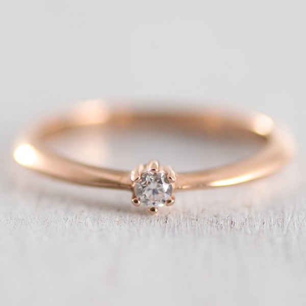 クラシカルな雰囲気の立て爪デザインのジルコニアリング