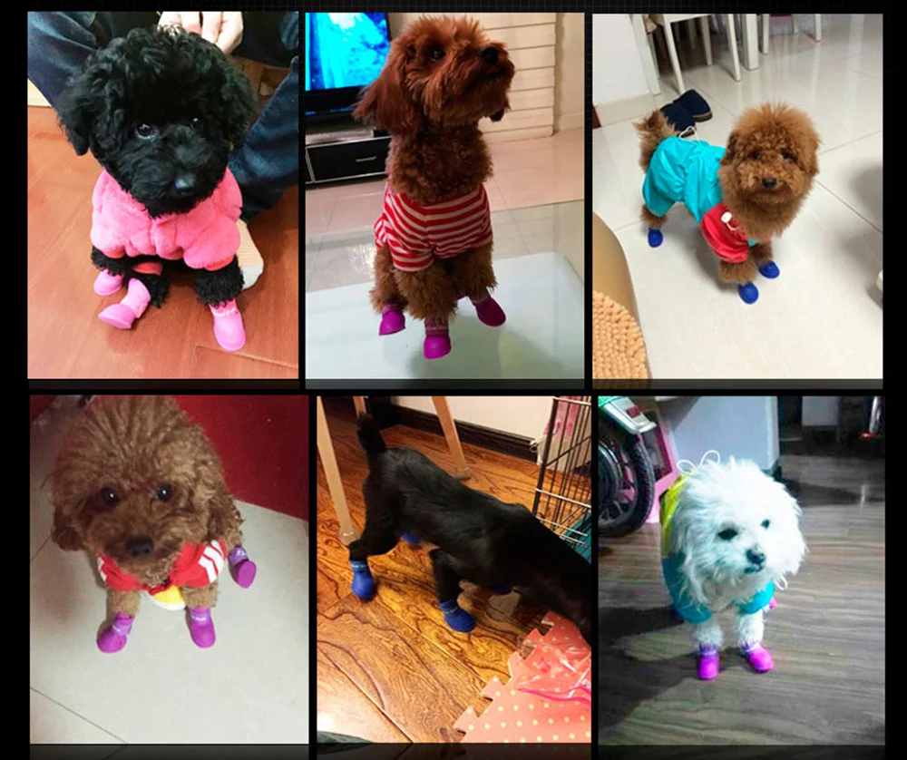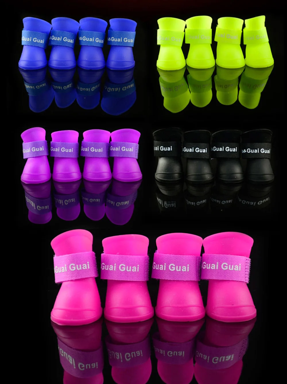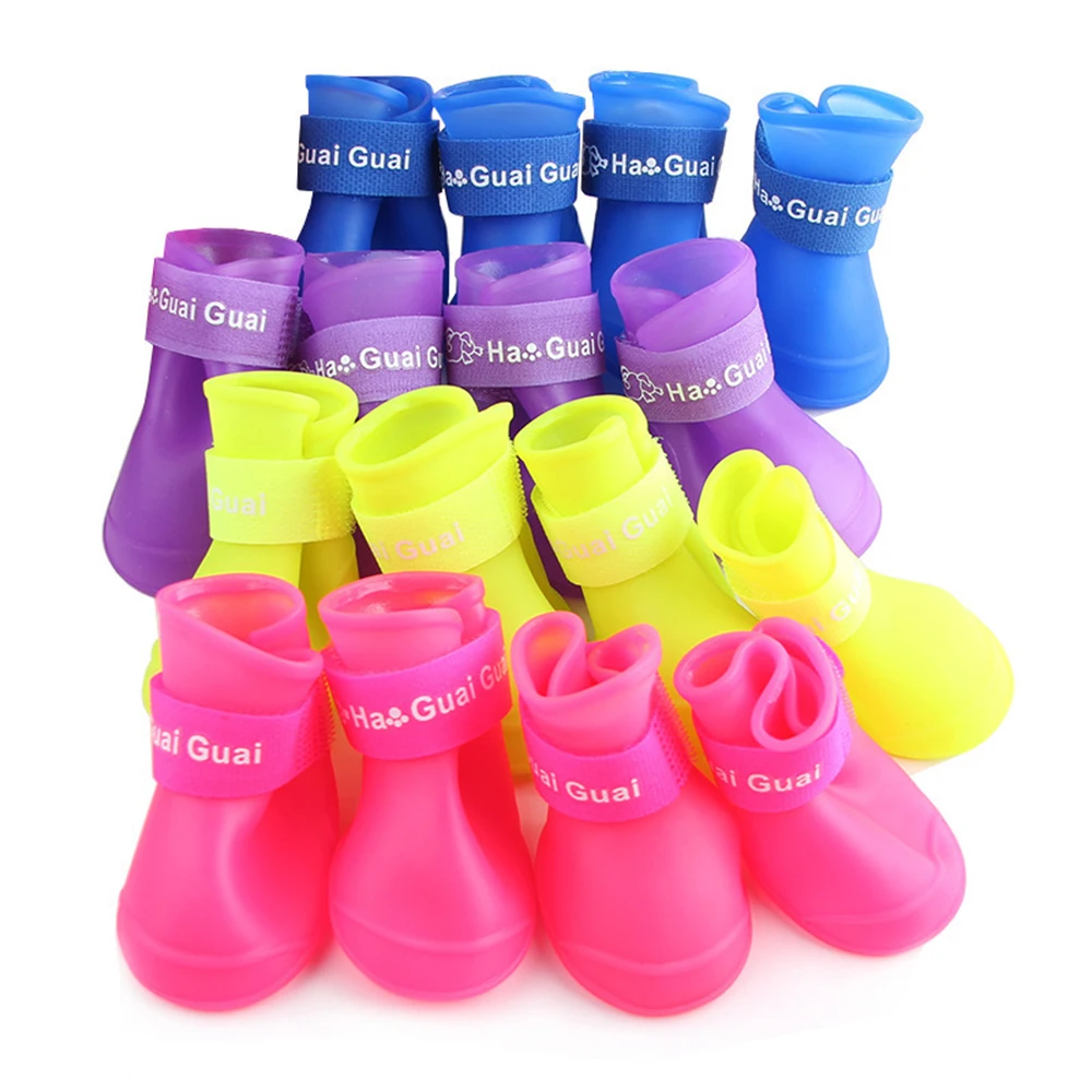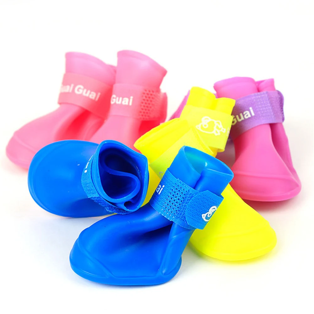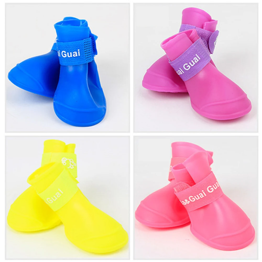 Package Include:Dog Candy Colors Boots Waterproof Rubber Pet Rain Shoes Booties(1Set)