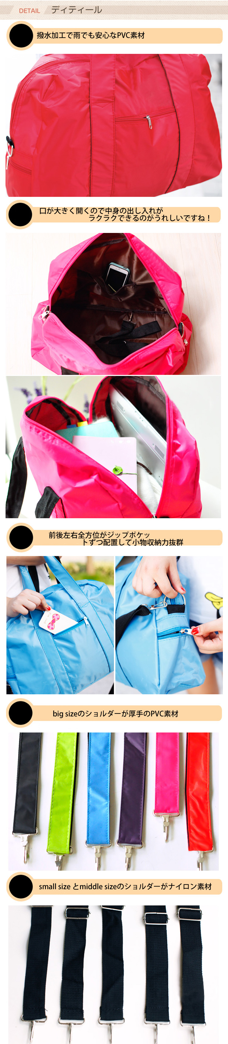 | おでかけ、収納、なんでもおまかせ!?可愛らしさと大人っぽさを融合!幅広い年齢層に対応したボストンバッグです。表面は撥水加工で突然の雨などから端末をしっかり保護します。ショルダーベルト付属で、ショルダーバックとしても使用可能!おでかけや旅行等どんな場面でも使える万能ボストンです★ショルダーストラップでラフに肩がけにしたり、そのまま手持ちにしたりとスタイルを変えて楽しめます 。内側と外側にファスナー付ポケットが有り、不意に中身を落とす心配がなく、大切な物を持ち運べます。収納力が抜群だから、1泊?3泊の短期旅行にもオススメ★ | |