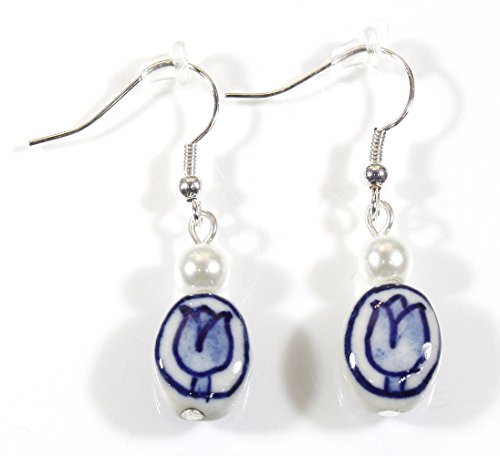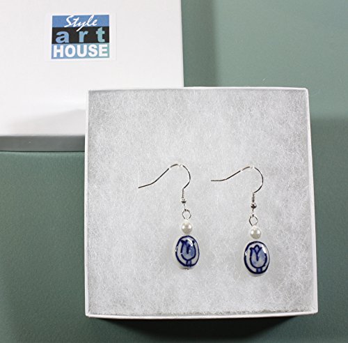 These pretty earrings with their little tulip motif are in the Blue Delft style of Dutch pottery