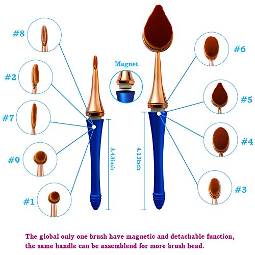 Tancy Koki Oval Mermaid Makeup Brushes Set 9pcs Original Patent Soft Professional Detachable Magnetic Toothbrush Foundation Contour Powder Blush...