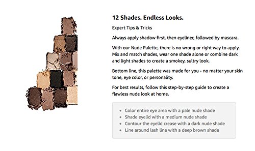 -. Binding : Misc. -. Brand : Secret for Longevity -. Color : Brown -. Feature : Neutral Nudes Brown Coffee Taupe Black Earth Tones Professional Eye Shadow Brow Shaper Hairline Filler Make Up Set (.34 oz) / 12-shade eyeshadow palette, Duo, trio and quad color combinations - Everything you need in one / Neutral colors compliment every complexion. Perfect size for gym or travel. / Use for eye shadow, brow shaper, and hairline filler. -. IsAdultProduct : 0 -. Label : Secret for Longevity -. Manufacturer : Secret for Longevity -. MPN : MakeupSet1 -. PackageQuantity : 1 -. PartNumber : MakeupSet1 -. ProductGroup : Beauty -. ProductTypeName : BEAUTY -. Publisher : Secret for Longevity -. Studio : Secret for Longevity -. Title : 12-Colors Neutral Nudes Brown Coffee Taupe Black Earth Tones Professional Eye Shadow Powder Brow Shaper Hairline Make Up Palette Set