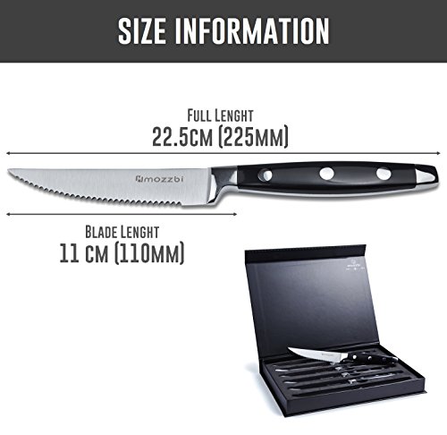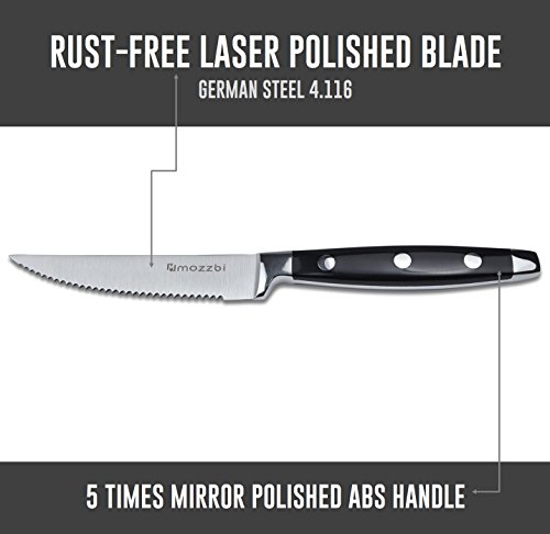 SATISFACTION GUARANTEED – Every Mozzbi steak knife set is backed by fine German stainless steel, superior craftsmanship, and a 1-year “no quibble” warranty. And if you aren’t satisfied in your first 30 days, return it for a full refund.