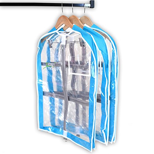 -. Feature : 18" w x 27" t x 3" Gusset, Designed to fit Closet Trolley 15" Travel Hanger / Features quality sewn seams and 4" x 6" ID Card Pocket / 2 Medium size accessories pocket / 1 large shoe pocket / P.R.Ice is PER garment bag