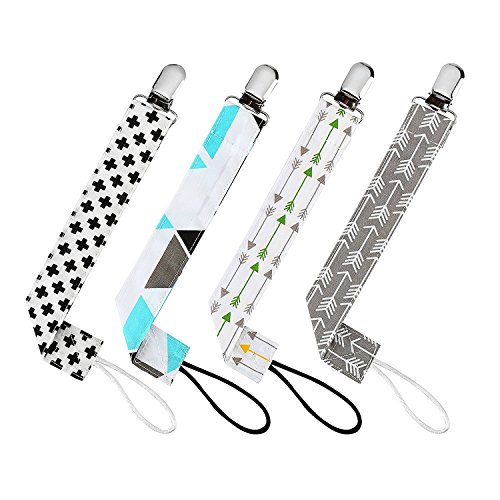 -. Title : Pacifier Clip - 4 Pack Unisex Baby Soothie Pacifier/Teething Ring Toys Holder - Stylish Pacifier Leash Designs for Boys and Girls