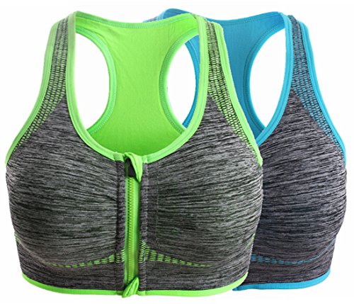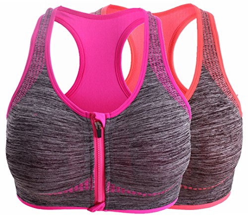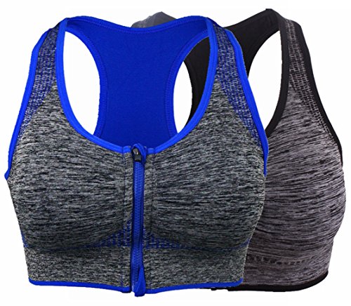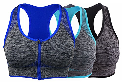 -. Feature : Front Zipper Closure: This is a combination of bodybuilding style and fashion style zipper bra,gives an ultra feminine look;Secure full-length front-opening zipper for easy on and off with safety hook for added reassurance;The zipper works great and once it is close in place, it does not unzipped;Also, both zippered ends have a piece of fabric guard/cover to protect your skin and keep the zipper secure in place / Material: The women's sport bra pack is made from moisture-wicking, breathable, high performance fabrics;The fabric delivers relentless support with a super-soft luxurious feel; Super-soft fabric wicks moisture to help you stay sweat-free and chafe-free.Four-way stretch fabric enhances comfort and allows wider range of movement / Added support: The Elastic band under the bust for added support;elastic chest band provides superior comfort;This gym bra for amazing stretch & comfort,full-Support,Ultra-light,no-chafe,no-sweat,no-bounce,no burden,comfortable and fashionable,when you do all kinds of exercise to protect the chest without prejudice to action / For Medium to High Impact Workouts: Built-in removable pads,can change according to the requirements of yourself;This activewear for women is good for everyday active lifestyle like Gym exercise,padded cups add overall structure and support,removable lightly-padded cups,designed to withstand medium to high impact workouts,protect your breasts from harm / Non Slip Headband: No slip silicone lining;Will not slip during intense activity;Great for Fitness,Sports and Casual use;Make Great Gifts for every sports and occasion;Runners,Fitness Fanatics,Field Hockey,Soccer,Basketball,Volleyball,Lacrosse,Gymnastics,CrossFit,Team Sports