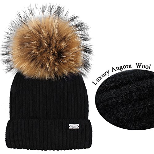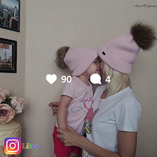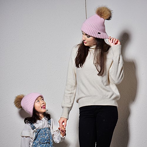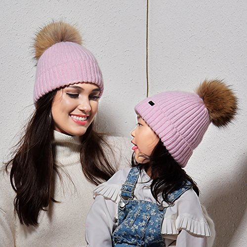 | Winter Knit Pom Pom Hat - Angora Wool Parent Child Beanie For Women Kids Toddler FURTALK Original |
