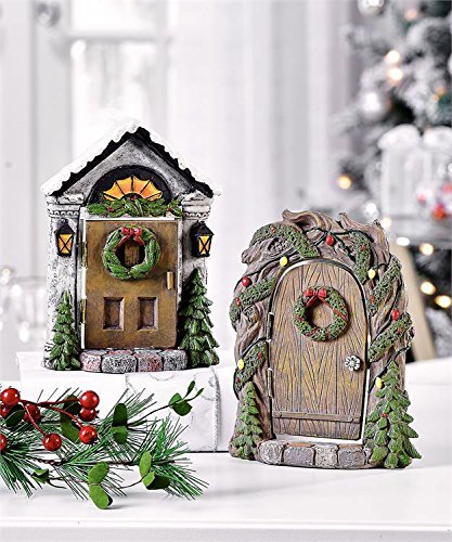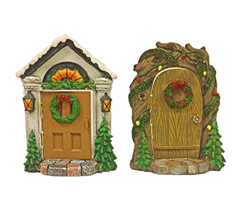 Set of Two MIniature Resin Fairy Garden Christmas Doors