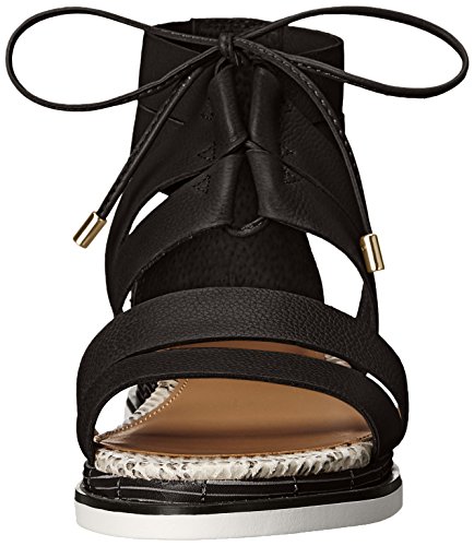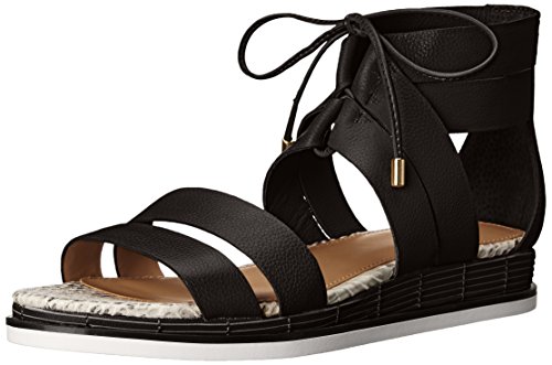 Gladiator-inspired sandal with strappy leather upper featuring lace front and covered heel counter