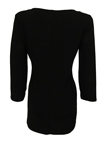 Product DescriptionTop features no lining, round neck, 3/4 sleeves, studded front, jersey fabric, tunic style, and pullover style.0