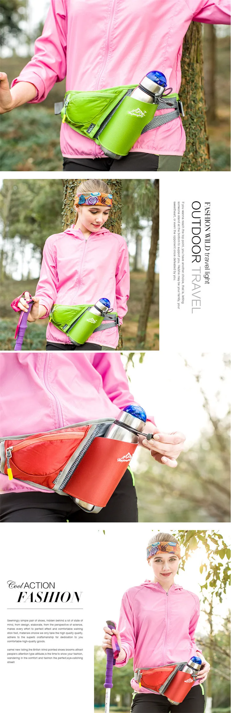 Waist Bag:For carrying water bottle and mobile phones and othher belongings
