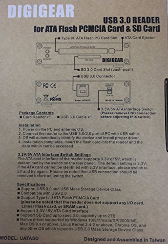 DIGIGEAR ATA Flash PCMCIA PC Card & SD/SDHC/SDXC USB 3.0 Industrial Grade Reader