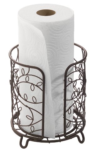 Decorative and versatile, the Bronze Twigz Paper Towel Holder by is the no-frills solution that will have your table or countertop looking ready for any occasion. Featuring a beautiful twig and leaf design, this metal paper towel holder adds flair to your decor. The large openings in the design act as handles, allowing you to transport it easily. The decorative wire design is easy to clean, and allows you to view the contents inside. Feet on the bottom keep your paper towels clean and dry. The wire construction provides a sturdy shell, while the bronze finish gives it its long-lasting chic look.