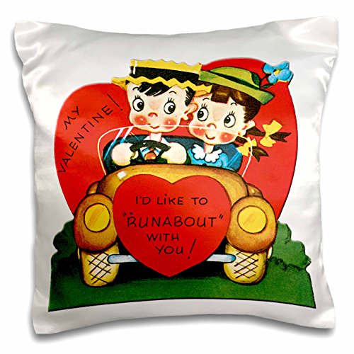 3dRose Cute Couple in a Convertible With a Red Heart on the Front - Pillow Case, 16 by 16-inch (pc_170256_1)