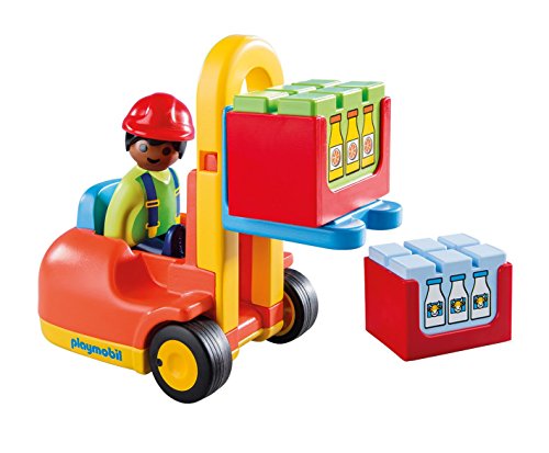 -. Feature : Transport heavy goods with the help of the Forklift / Set includes one figure, forklift, and two crates of bottles / Moveable fork makes moving cargo easy / Features bright and colorful design and large, rounded pieces / PLAYMOBIL 1.2.3 sets are ideal for toddlers